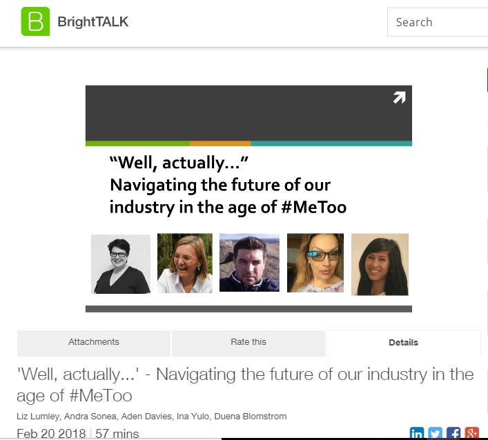 Thank you all for taking the time to listen to our webcast yesterday ‘Well, actually…Navigating the future of our industry in the age of #MeToo’